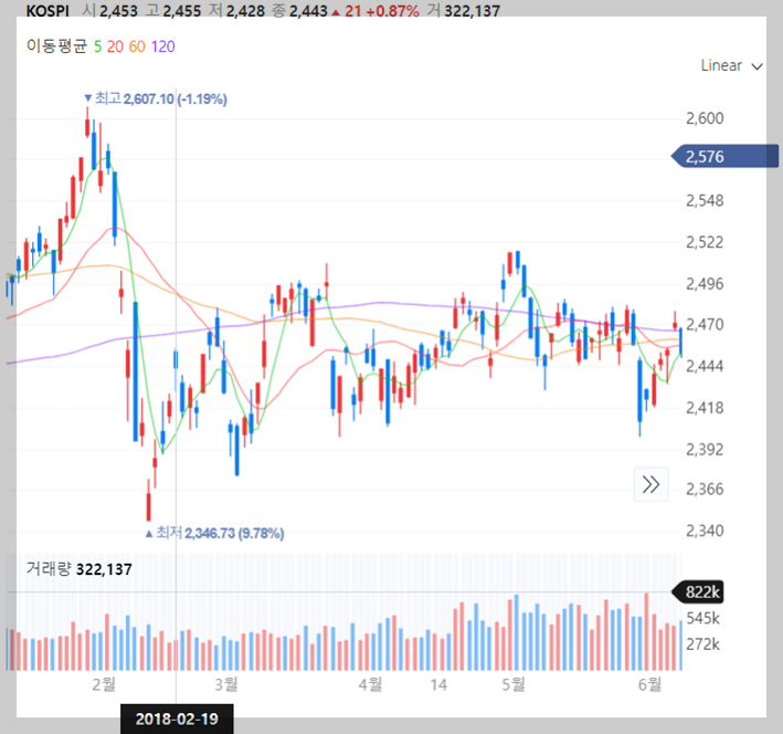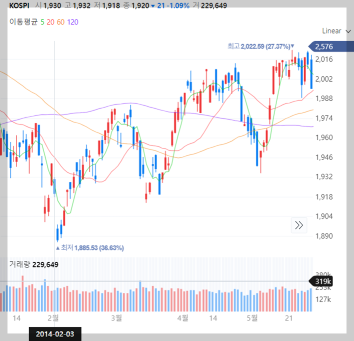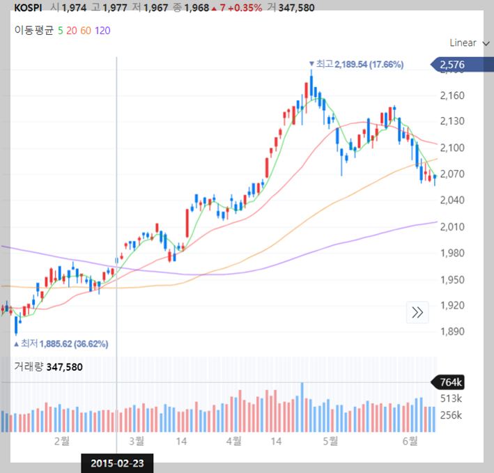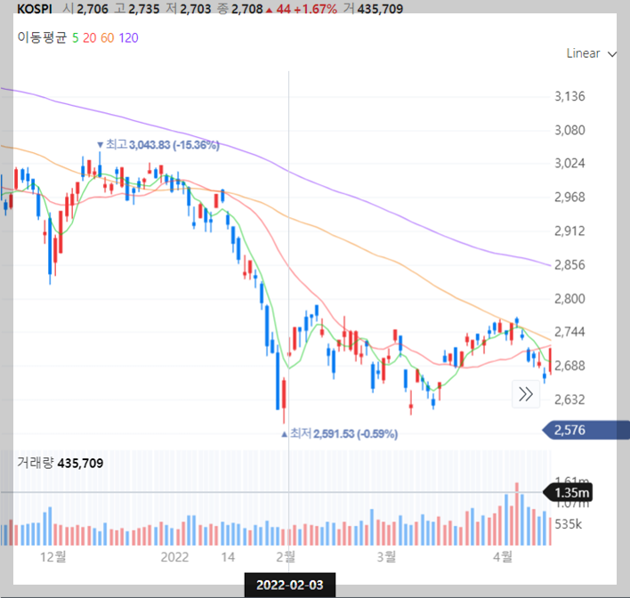 요즘 저 PBR 테마로 저평가 우량주들 수급 들어오는거 같아 우량주가 많은 코스피 차트만 비교 해보았습니다.