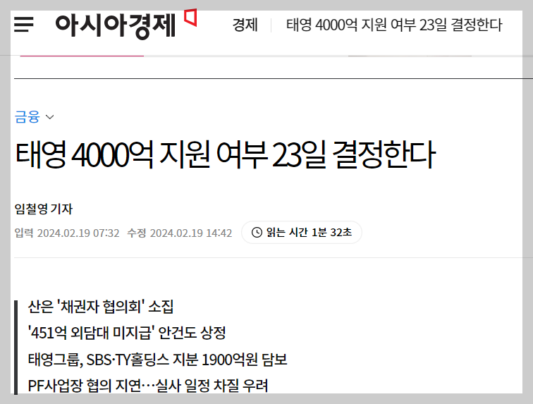 며칠 전 웹 서핑중 태영건설 관련 뉴스를 보게 되었습니다.