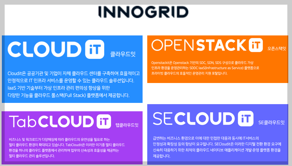 이후 오픈스택잇, 탭클라우드잇, SE클라우드잇을 차례되로 출시하며 성장하였습니다.