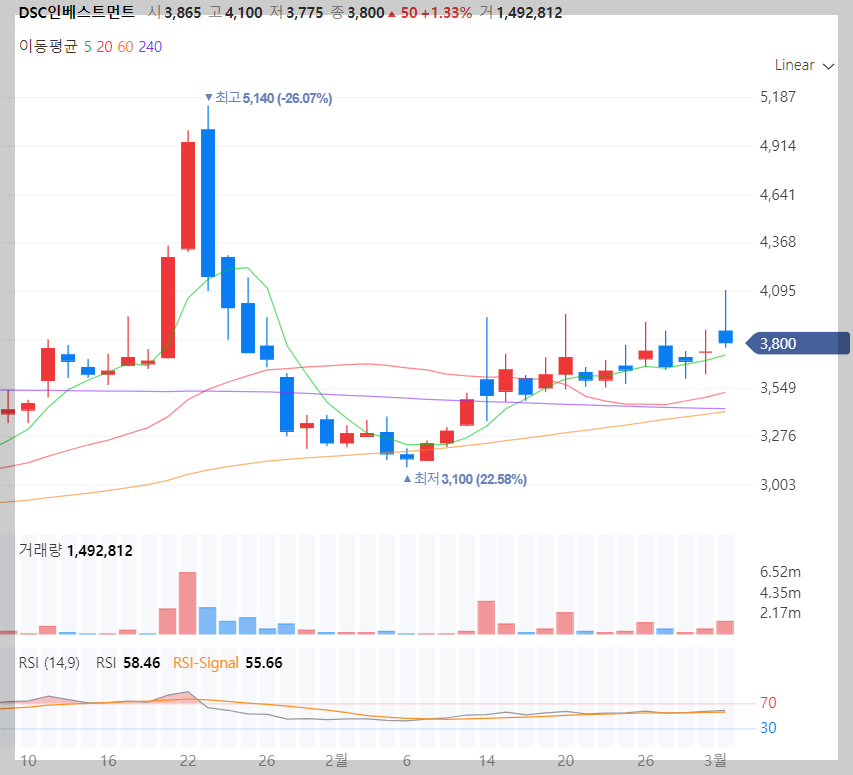 DSC인베스트먼트 기업 차트 분석