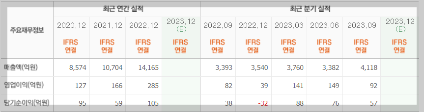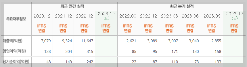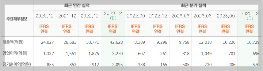 20년도 이후 매년 매출, 영업이익, 순이익 모두 증가 추세에 있습니다.