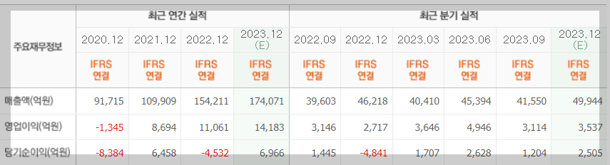 위 표에는 안나왔지만 23년도 사상 최대 실적을 기록하였습니다.