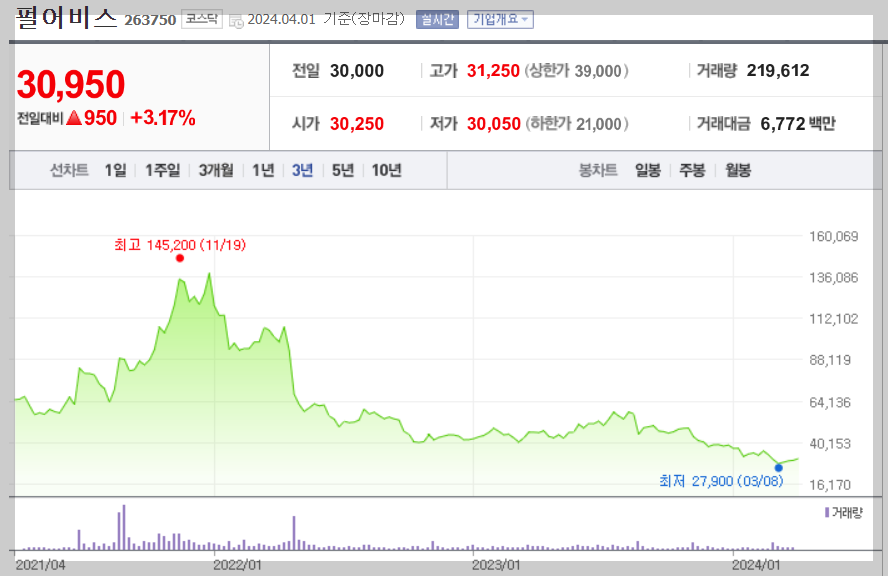 안녕하세요. 최근 주식 검색중 RSI 저점 두번 확인 된 게임주 펄어비스를 관심있게 보고 있습니다.
