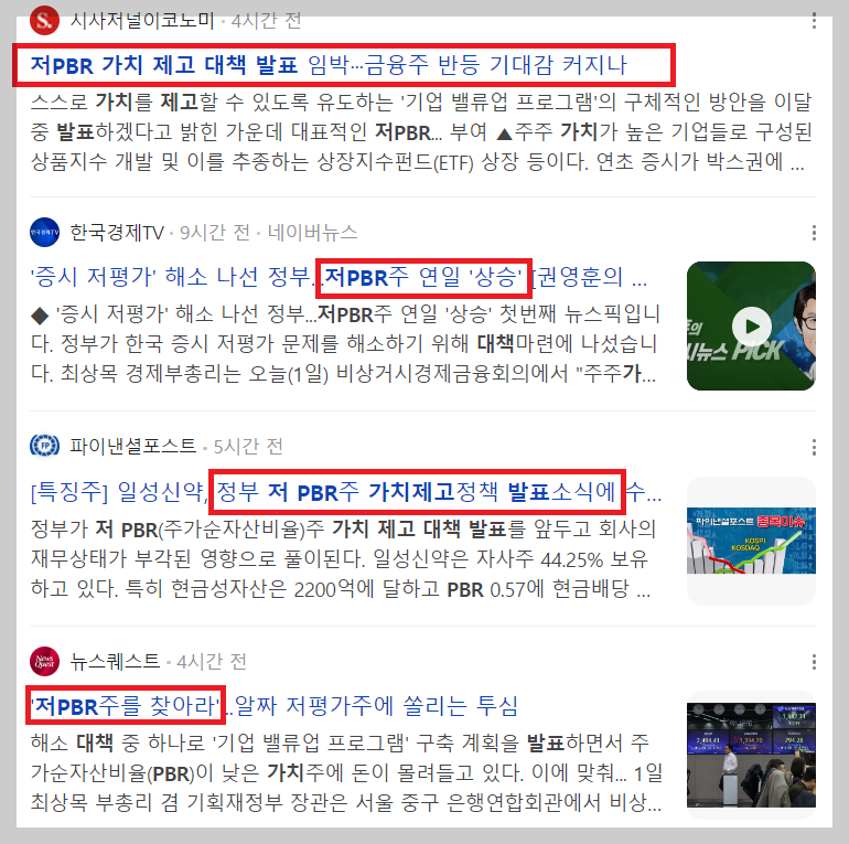이러한 이슈로 현재 저 PBR 주식들이 상승하고 있습니다.